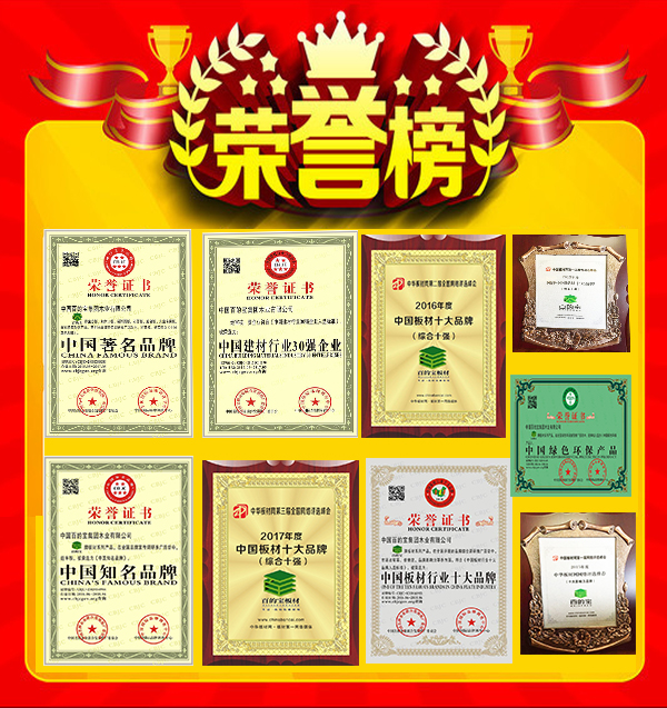 品牌的價值是無限的,百的寶板材品牌產(chǎn)品已經(jīng)獲得“ISO9001-9002國際質(zhì)量體系認證”、“ISO14001-2004國際環(huán)境體系認證”、“ 中國環(huán)境標志認證”、“中國板材品牌”、“中國綠色環(huán)保產(chǎn)品”、“中國建材行業(yè)30強企業(yè)”等等,依然能成為中國板材行業(yè)的中流砥柱。