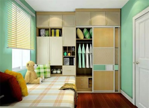 衣柜的柜門一般有兩種選擇:推拉門或者平開門,這要根據臥室的面積來決定。