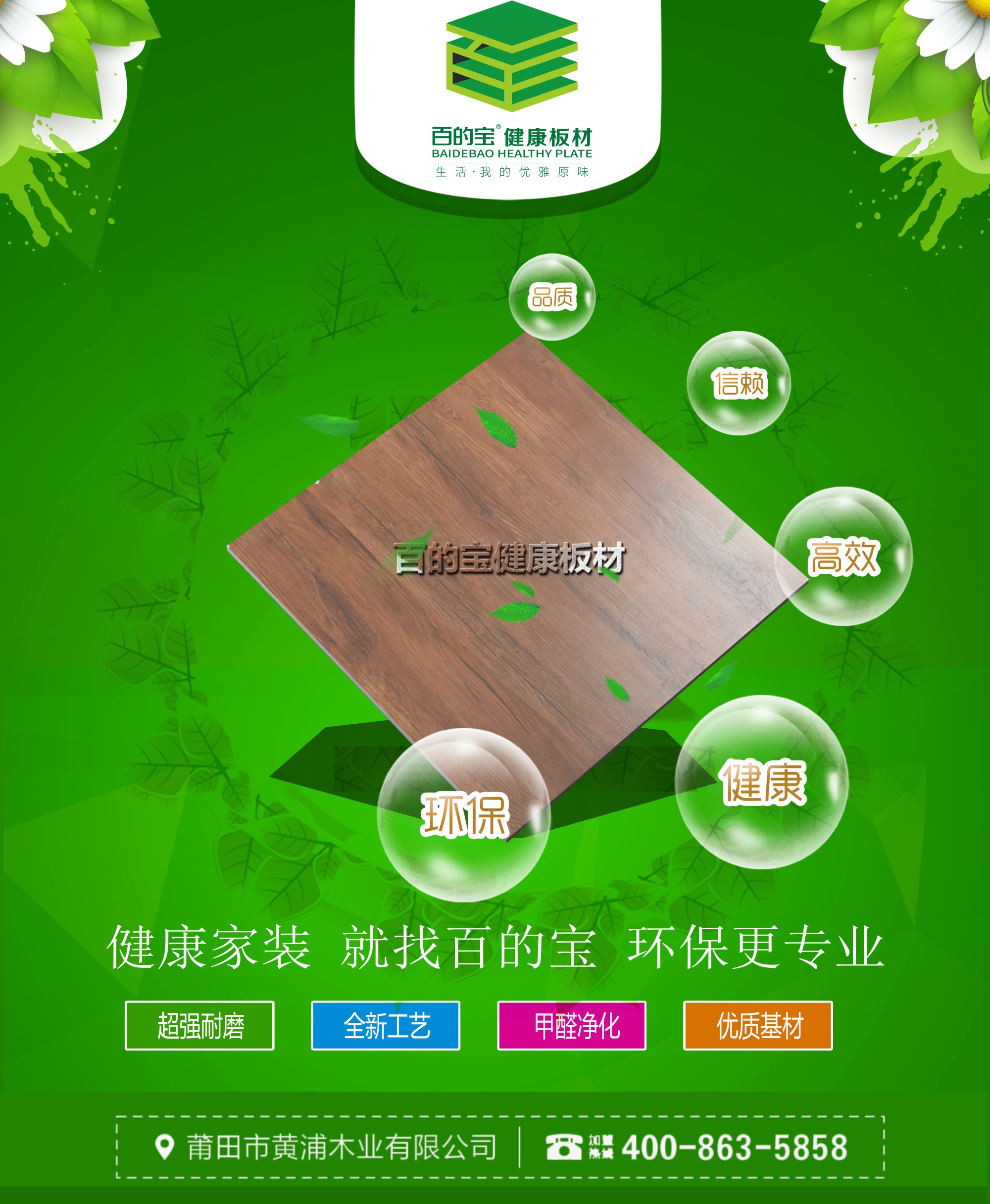 百的寶人一直把締造健康家居生活當做自己的使命,用誠意和匠心制造每一張板材,專業(yè)守護您和您家人的健康。