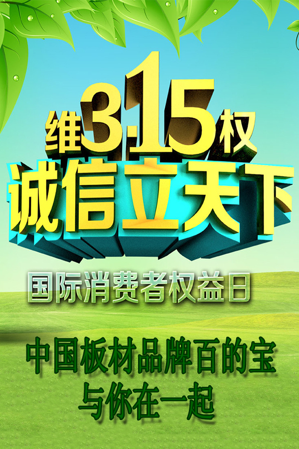 3.15來臨之際,中國板材品牌百的寶呼吁大家:團結一致從杜絕假冒偽劣產品、黑心產品開始,抵制韓貨、日貨,支持國貨,這應該就是民眾對祖國最有力的支持!