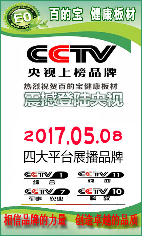因為對于品牌來說,傳播是十分重要的。所以想要品牌做大的企業,都需要鋪好產品渠道,擴大品牌影響力,積累品牌口碑。所以這次和央視的合作既是消費者和國家平臺對百的寶板材的認可,也是中國百的寶集團木業有限公司的發展方向:從華東一步一步向全國推進的布局。