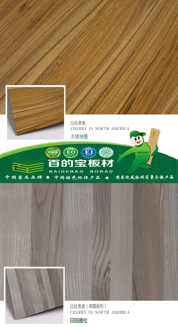 中國板材品牌百的寶生態板攻破了以前以密度板和刨花板為基材的游離甲醛高、容易起泡、分層、爆邊、防潮性差、握釘力差等技術難關,更是克服了烤漆板表面容易產生劃痕和對人體產生危害氣味的缺點。